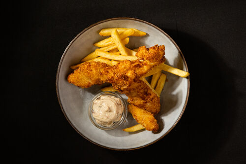 Фиш & чипс — традиционное британское блюдо, состоящее из хрустящей жареной рыбы, подаваемой с картофелем фри. Это популярное угощение, которое сочетает в себе аппетитный вкус и насыщенный аромат, идеально подходящее для обеда или ужина. Уникальная рецептура и высокое качество ингредиентов обеспечивают незабываемое гастрономическое впечатление.