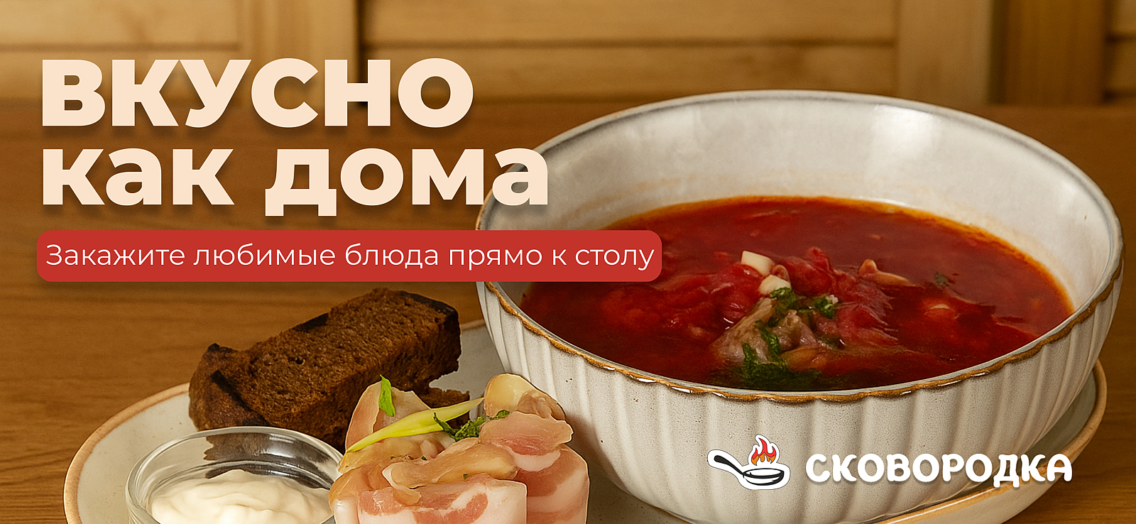 Наваристый борщ с говядиной и грудинкой, подаётся со сметаной и зеленью